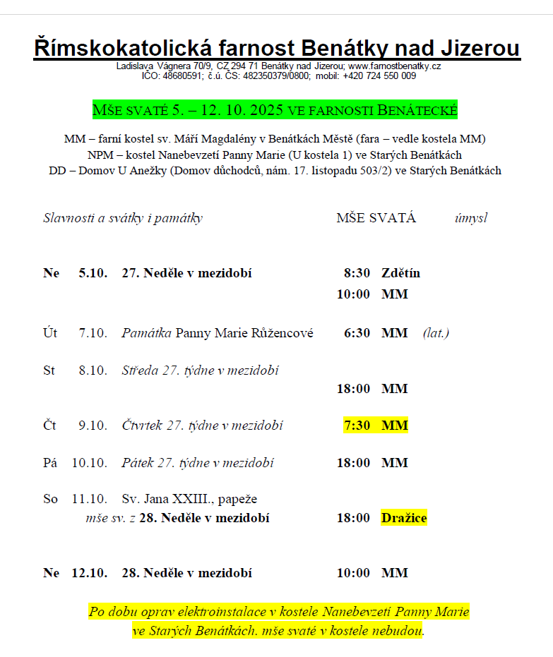 Kdož byste ještě chtěl jet společně - přihlaste se nejpozději v neděli po mši svaté.