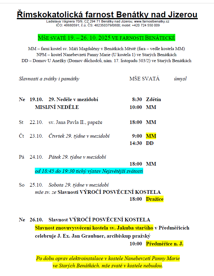 V neděli 5.10. ve 14 hod. odjíždíme z Benátek nad Jizerou na pouť po jubilejních kostelích - tentokrát do basiliky sv. Markéty v Praze -Břevnově.