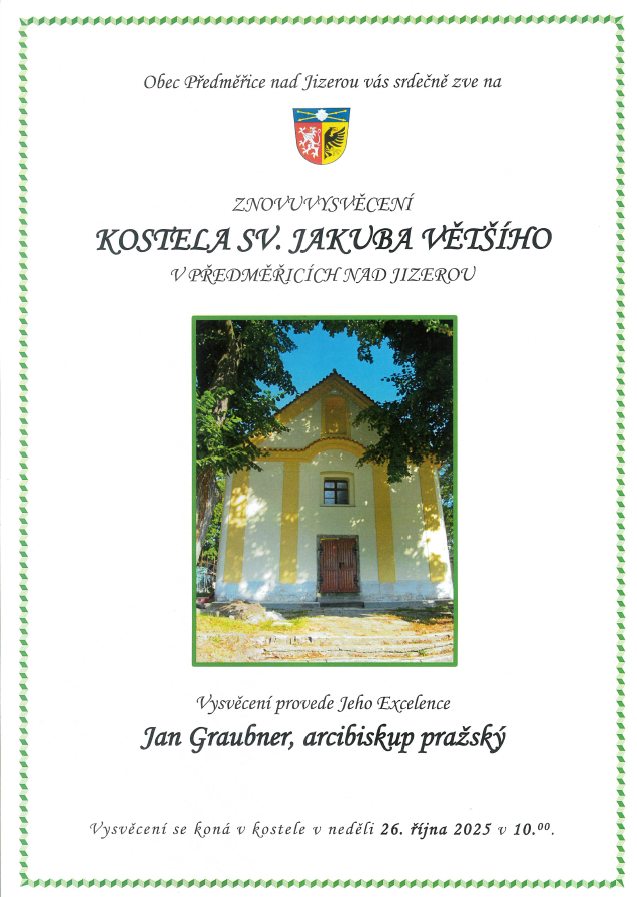 Znovuvysvěcení kostela sv. Jakuba st. v Předměřicích n.J.