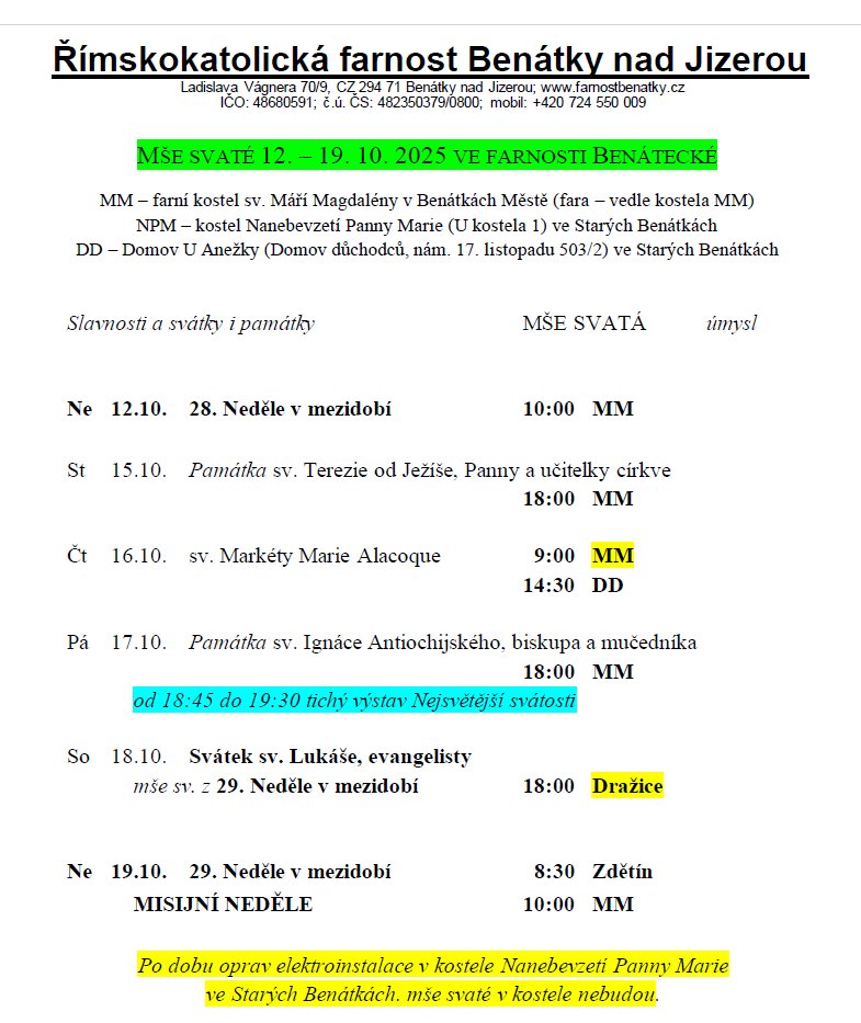 V neděli 5.10. ve 14 hod. odjíždíme z Benátek nad Jizerou na pouť po jubilejních kostelích - tentokrát do basiliky sv. Markéty v Praze -Břevnově.