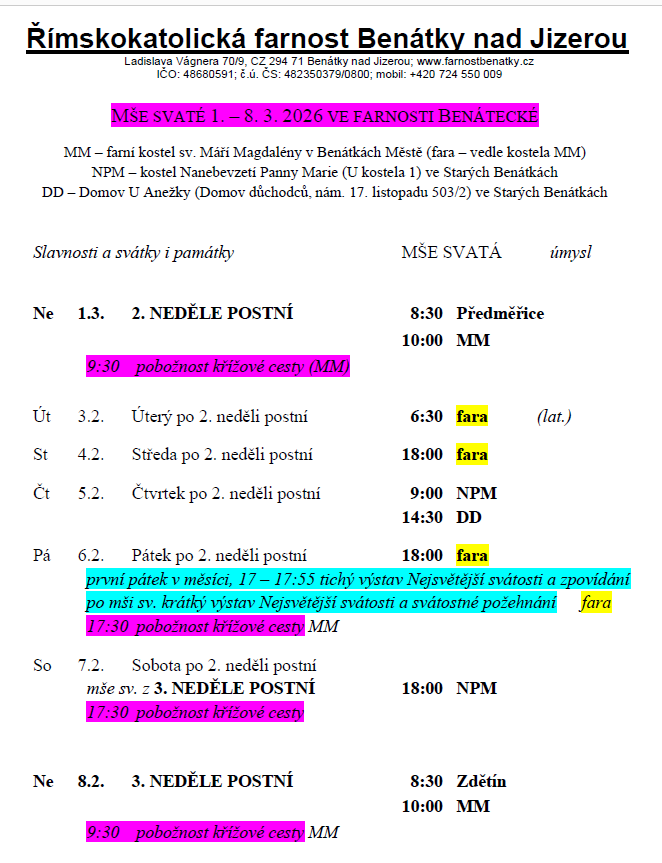 Bohoslužby 1. - 8.3.2026