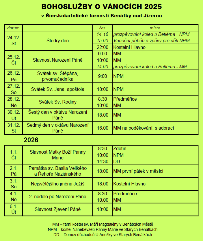Bohoslužby o Vánocích 2025